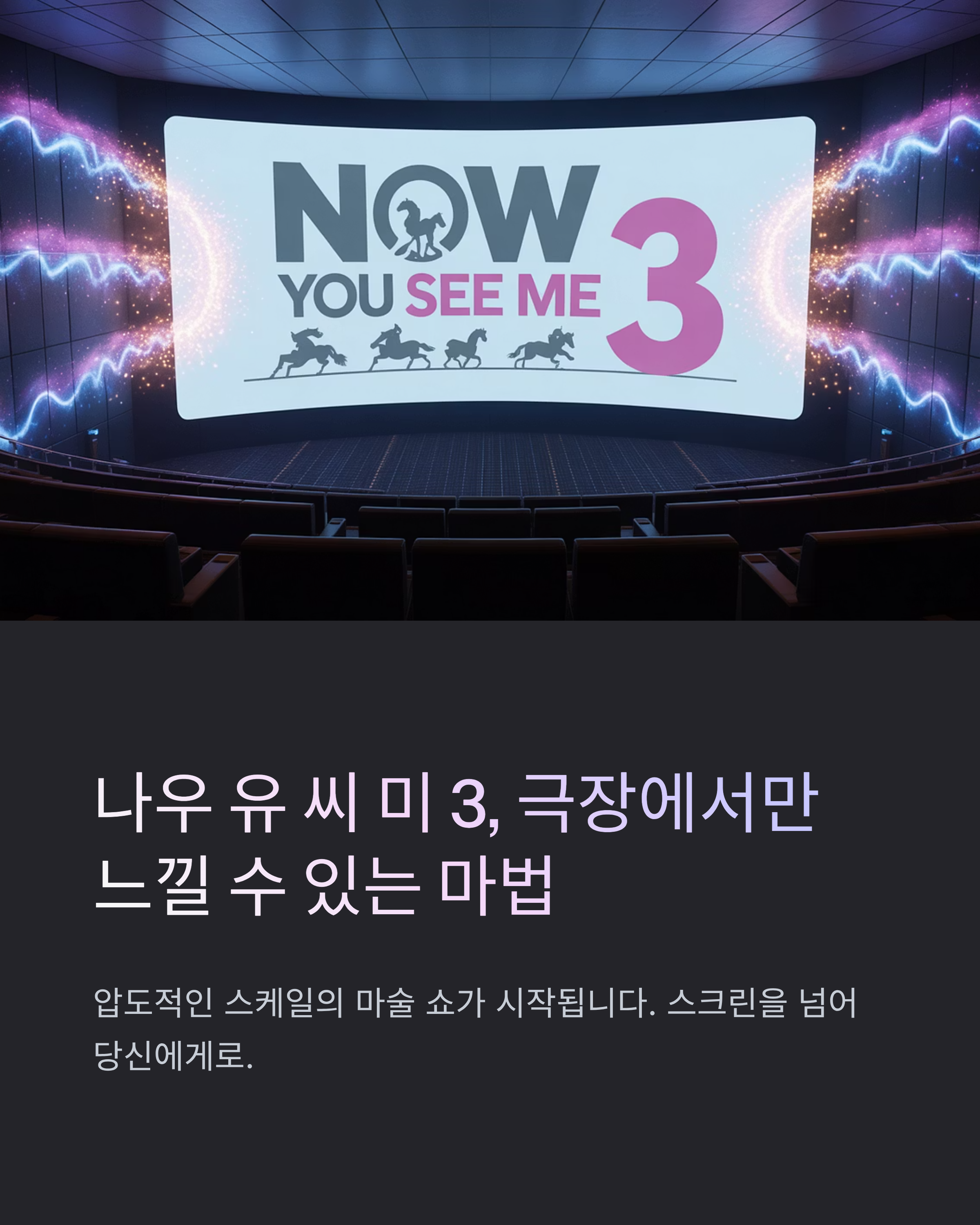 나우 유 씨 미 3는 시리즈의 모든 것을 집대성한 최고의 마스터피스가 될 것입니다. 이 영화가 선사할 압도적인 스케일의 일루전과 청각적인 몰입감은 오직 극장에서만 온전히 즐길 수 있는 특권입니다.